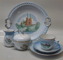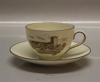 Danmark Creme porcelæn, danske motiver i brun streg, form 612 Bing & Grøndahl
