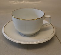 Antik 616 Kagetallerken 17 cm bred poler guldkant Hvidt porcelæn med bred guldkant på antik form Bing & Grøndahl