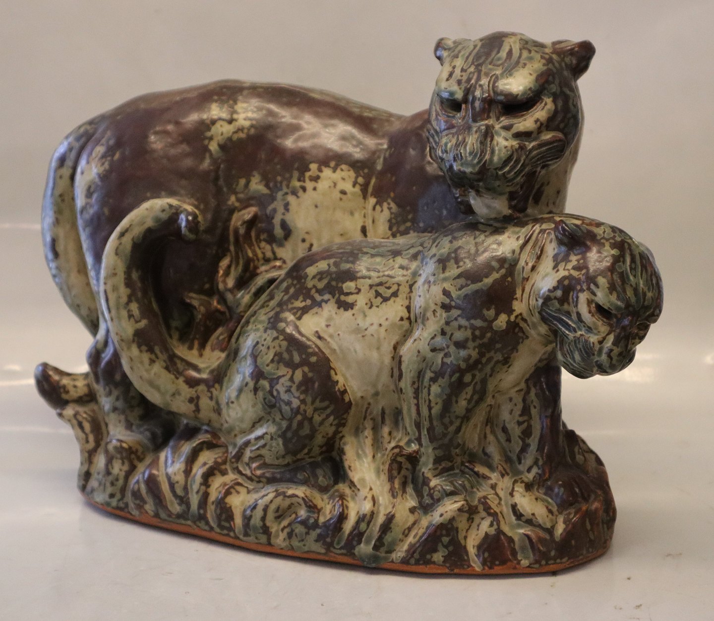 Royal Copenhagen stentøj 20263 Kgl. 2 pantere 28 x 40 cm Knud Kyhn juni 1931 I fin og hel stand Leoparder