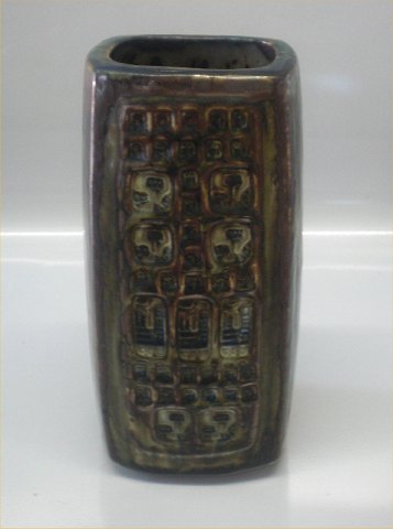 21923 Kgl. Firkantet Vase med relief 24 x 11 cm Jørgen Mogensen juni 1962