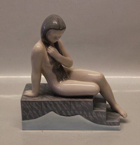 Beskrivelse: Bing & Grøndahl B&G 2302 Nøgen pige ved havbreden - Den lille havfrue Sv. Jespersen / Ebbe Sadolin I fin og hel stand.