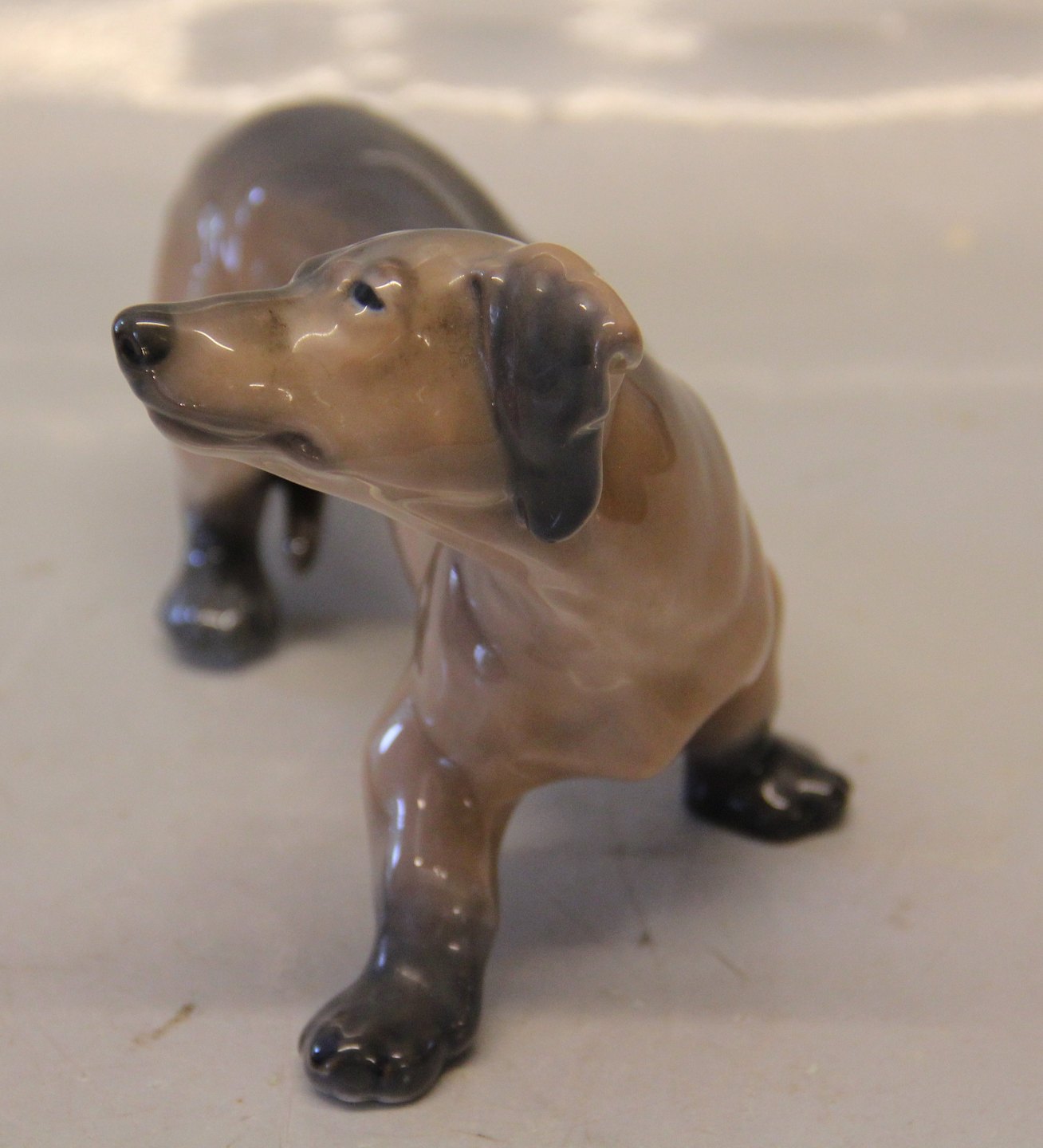 Beskrivelse: Kgl. hundefigur fra Royal Copenhagen 1450 Kgl. Gravhund KM 1913 11 x 19 cm I hel og fin stand Dachel, TAX, Dachs Knud Møller