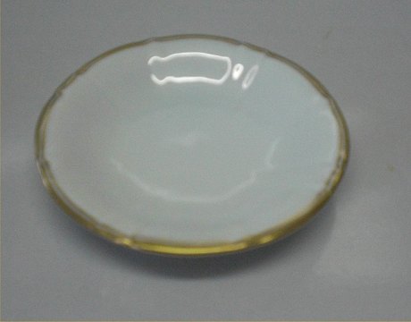 Beskrivelse: Bing & Grøndahl Offenbach 332 Kuvert smør 9,5 cm (032) Hvidt kantet porcelæn med bred guldkant.Bing & Groendahl I hel og fin stand