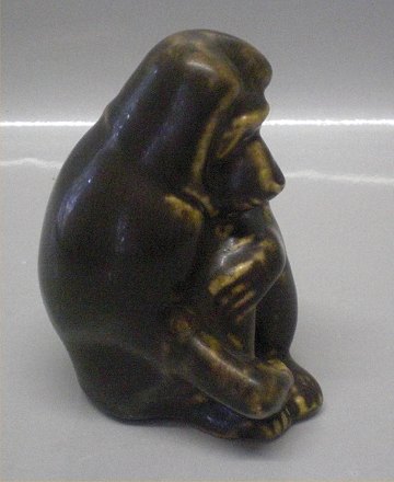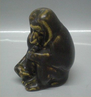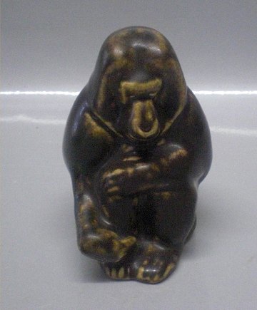 : Keramik abe fra Michael Andersen 10 cm - Bavian Brun glasur I fin stand Mærket med de tre fisk i trekant