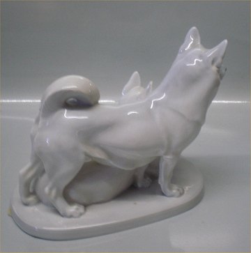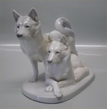 Beskrivelse: Kgl. hundefigur fra Royal Copenhagen Grønlandske slædehunde 1882 Huskies par Designed Peter Herold 1917 I hel og fin stand