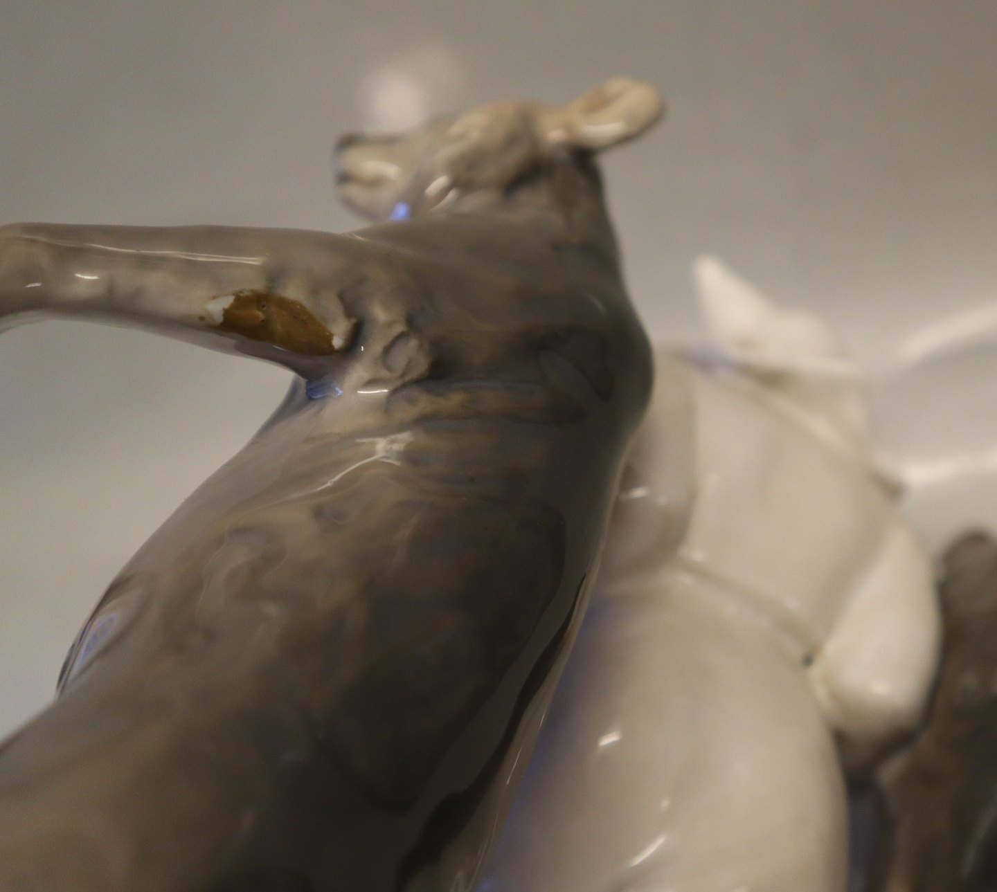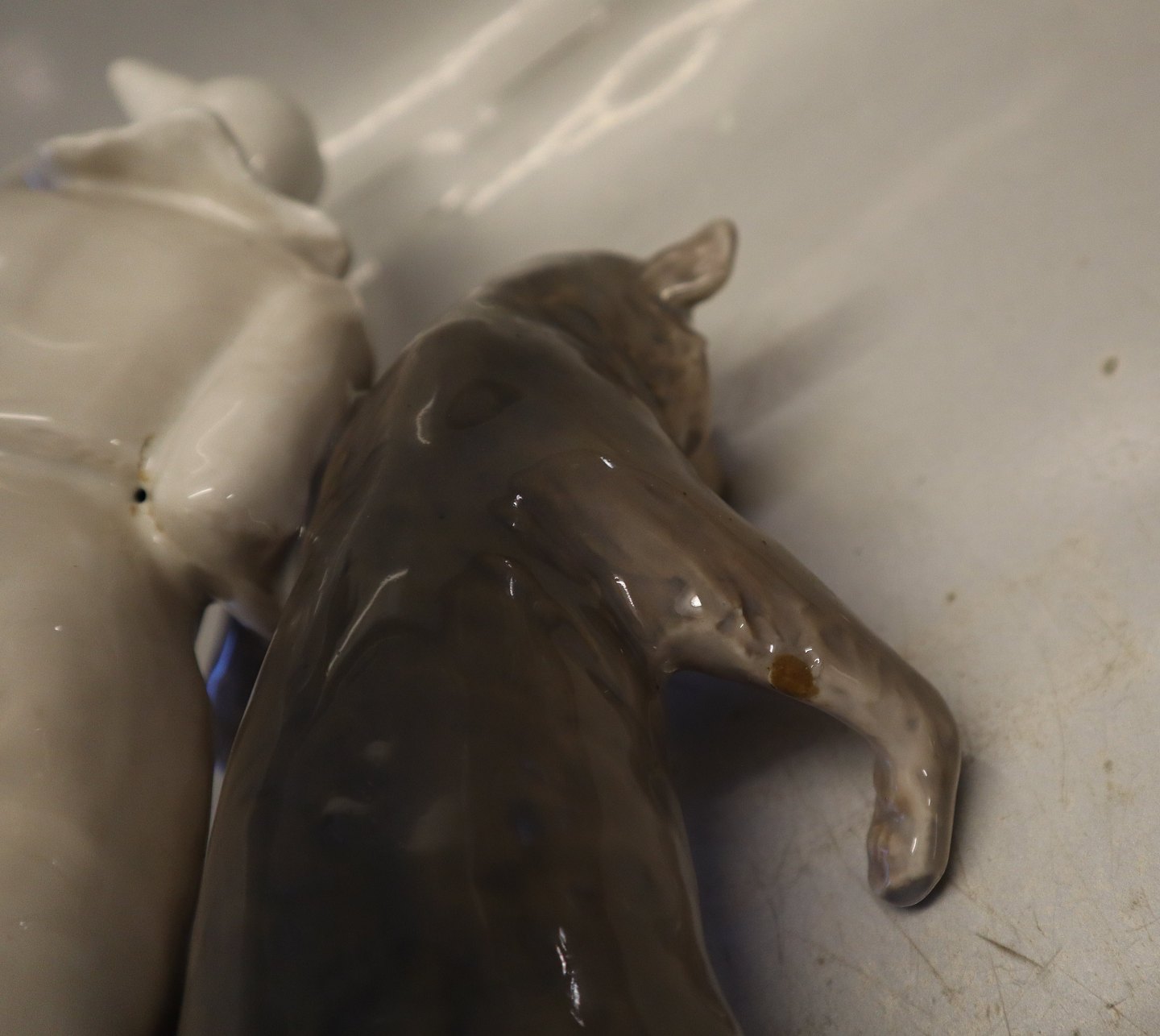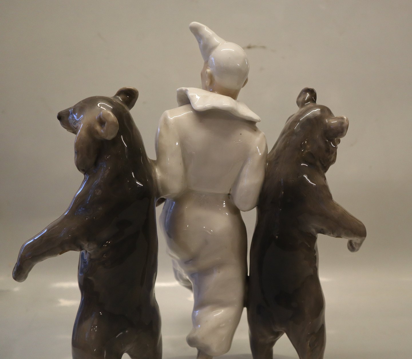 Beskrivelse: Kgl. 330 Kgl. Klovn og 2 Dansende bjørne 30 x 25 cm Signeret Carl. J. Bonnesen 1899 CJB fra Royal Copenhagen 1. sortering I hel og fin stand men med sædvanlige støttemærker under bjørnes "arme" se billeder