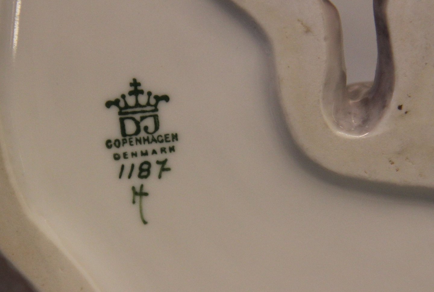 Beskrivelse: Dahl Jensen hund. 1187 Engelsk sætter 27,5 cm Mærket med kongelig krone og DJ Copenhagen I i hel og fin stand.