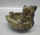 21738 Kgl. Abe på skål med slange 12 x 14 cm, Knud Kyhn, Februar 1960