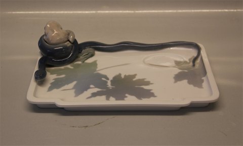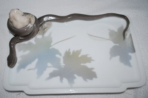 Beskrivelse: Kgl. Tidlig Art Nouveau Blækhus med slange og frø nr 19 7,5 x 27 17,5 cm Design Erik Nielsen 1896 fra Royal Copenhagen I hel og fin stand Skrivesæt
