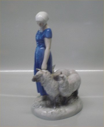 Beskrivelse: Bing & Grøndahl B&G 2010 Hyrdinde med får Design Axel Locher 26 cm 2. sortering I fin og hel stand.