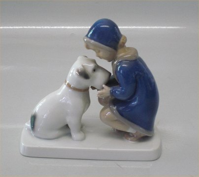 : Bing & Grøndahl B&G 2163 Pige med hund 11 cm Claire Weiss 2. sort I fin og hel stand.