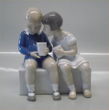 B&G figur B&G 2175 To børn på en bænk 14 cm