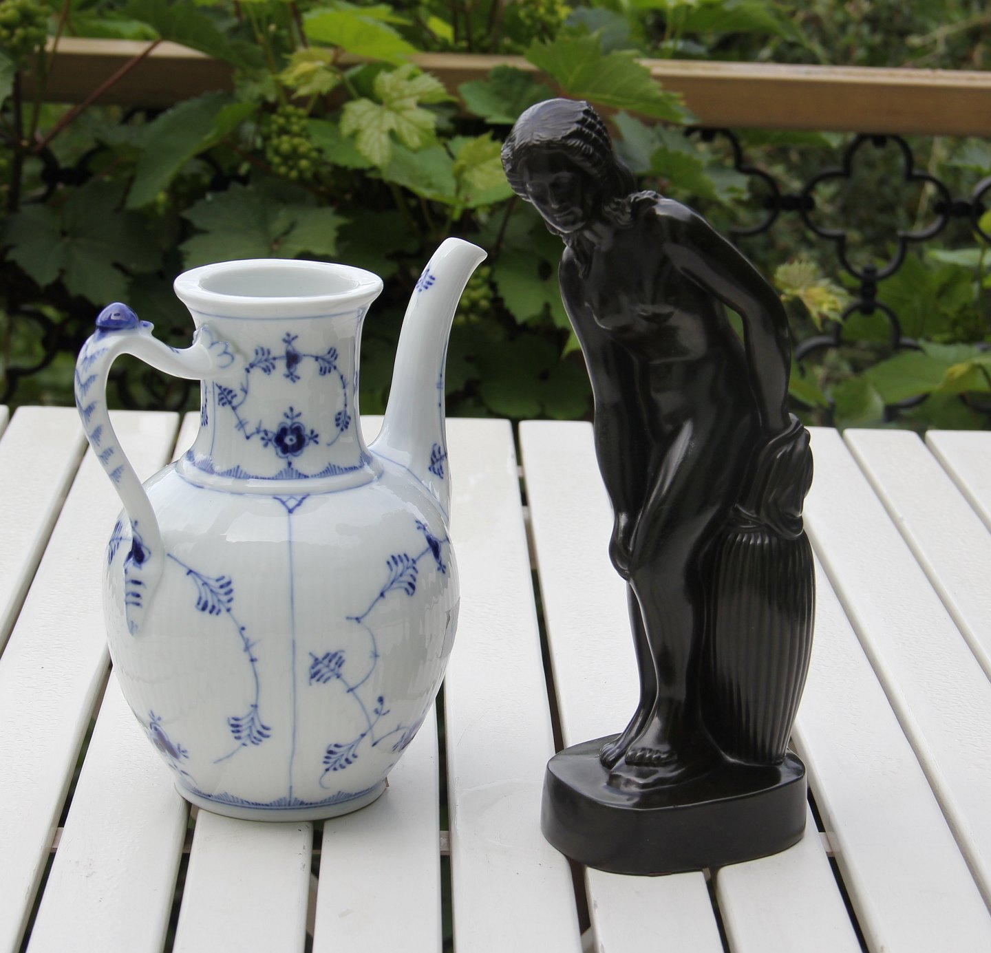 Just Andersen Disko Nøgen Kvinde ved stor kanneleret krukke 28 cm