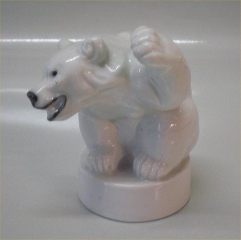 233 (1003 233) Hvid bjørn med pote i vejret på rund base ca 10 cm Knud Kyhn 21433 Kongelig Dansk Stentøj