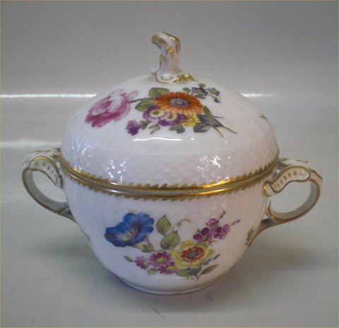 Beskrivelse: Royal Copenhagen porcelæn Fuld Saksisk Blomst 004-1680 Sukkerskål med låg 11 x 14 cm pre 1900. Håndmalet. I fin og hel stand