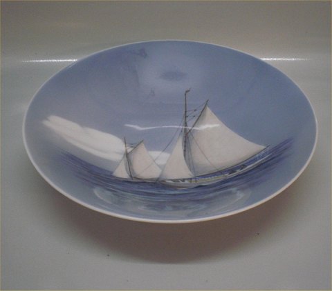 Beskrivelse: Kgl. 2902-3480 Skål med marinemotiv 7 x 30 cm Lystsejlere for fulde sejl fra Royal Copenhagen I hel og fin stand