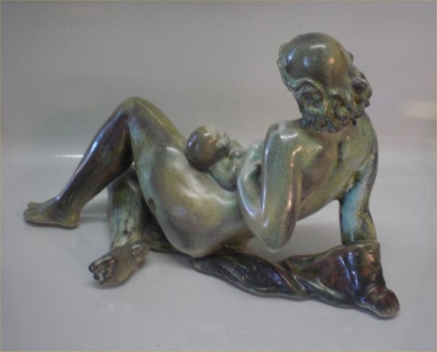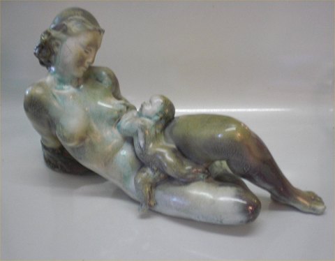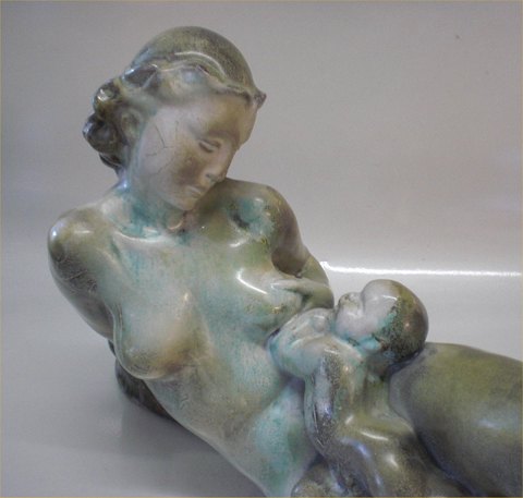 Beskrivelse: Super flot figur fra Dansk Keramik Michael Andersen Bornholm Mor med barn ca 23 x 42 cm 4877 S E