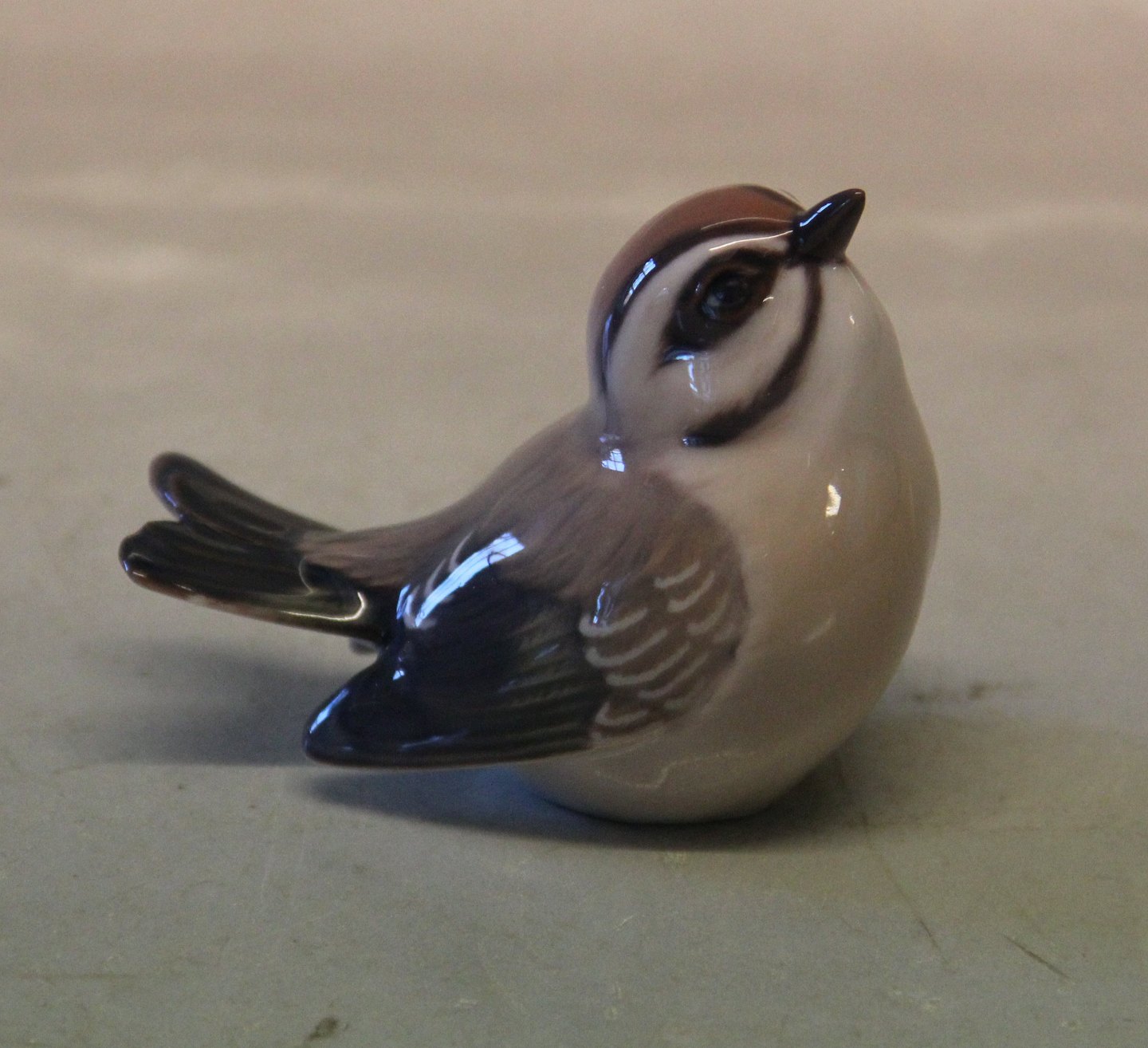 Beskrivelse: Dahl Jensen fugl 1230 Gråspurv 9,5 cm (DJ) 1. sortering. Mærket med kongelig krone og DJ Copenhagen i hel og fin stand.