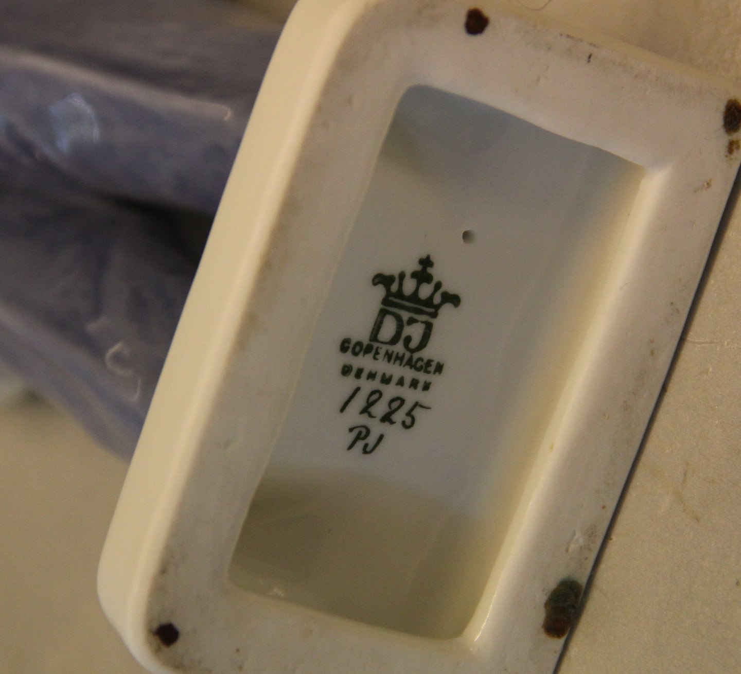 Beskrivelse: Dahl Jensen 1225 Dreng i matrostøj 21,5 cm (DJ). 2. Mærket med kongelig krone og DJ Copenhagen i hel og fin stand. Sømandstøj Skibsdreng