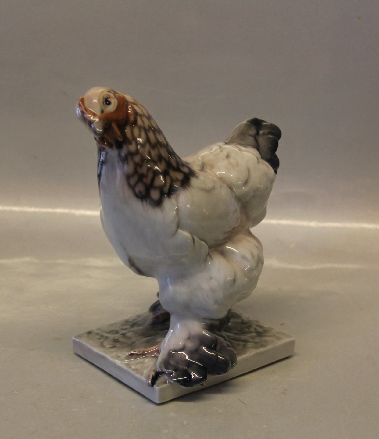 Beskrivelse: Dahl Jensen 1021 Brahmaputrahøne (DJ) 16 cm. Mærket med kongelig krone og DJ Copenhagen i hel og fin stand. Kylling