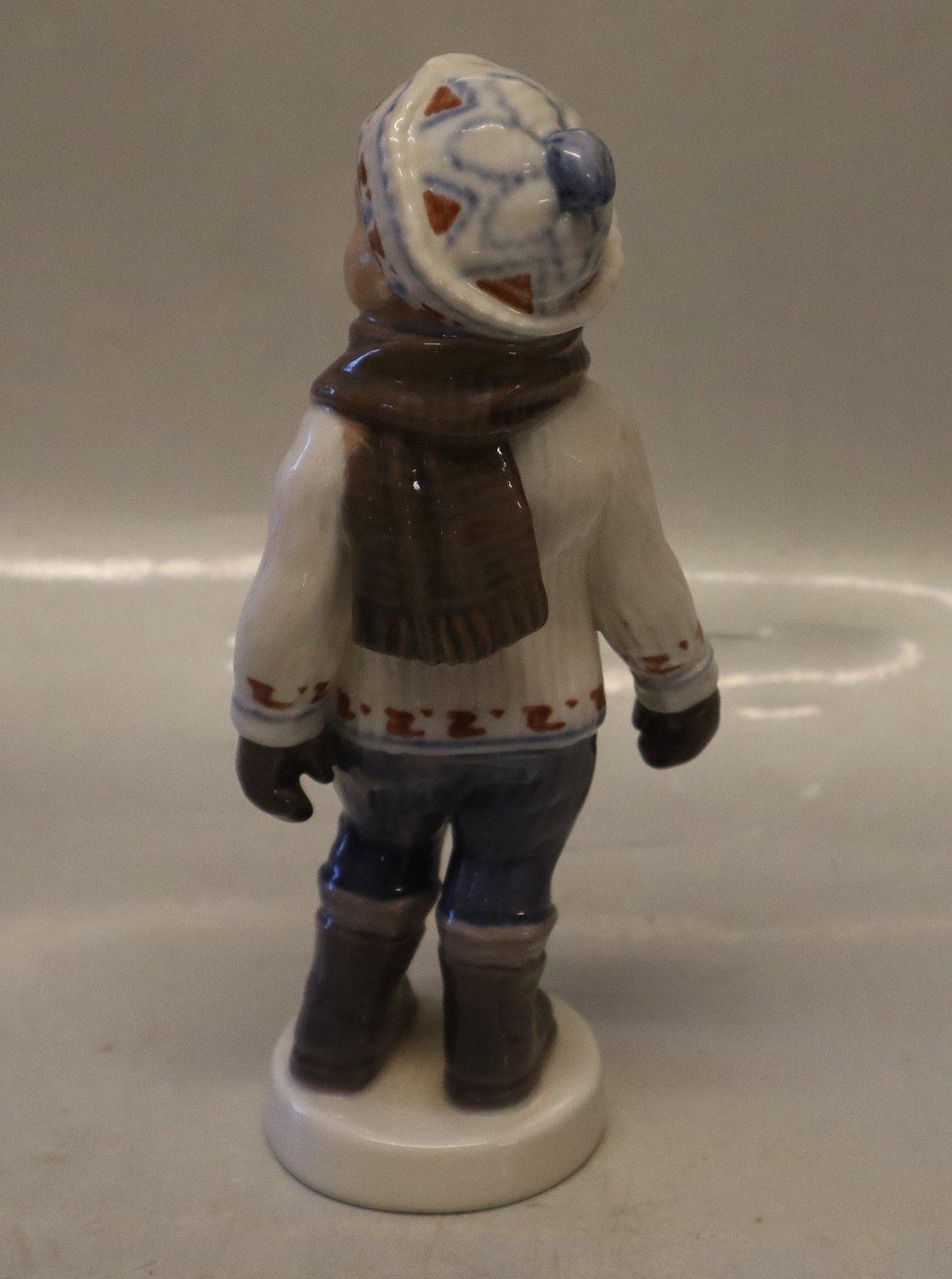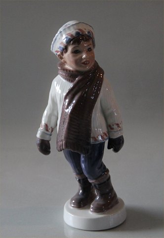 Dahl Jensen 1064 Dreng i vintertøj (DJ) 19,5 cm. Mærket med kongelig krone og DJ Copenhagen i hel og fin stand.