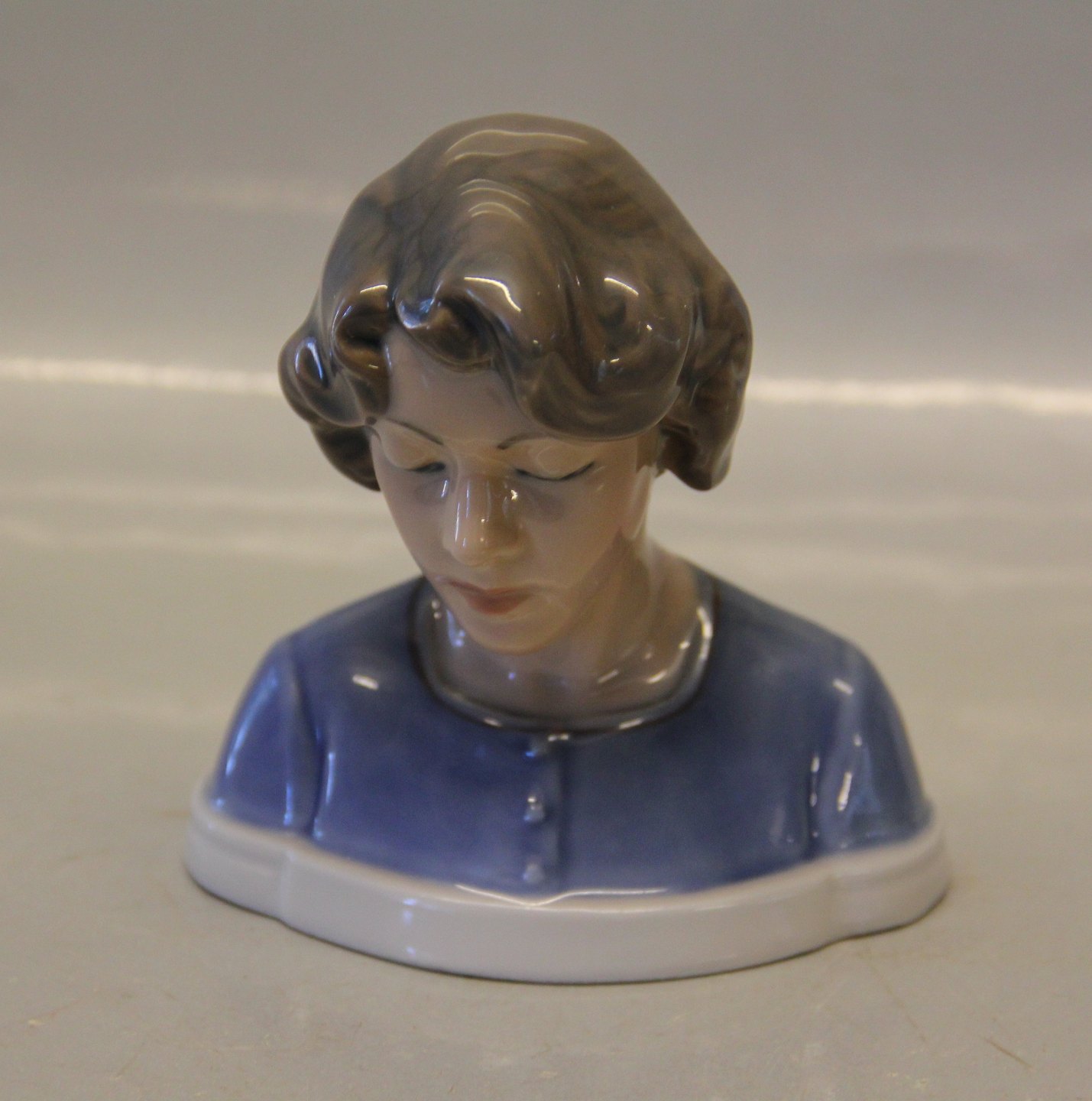Beskrivelse: Dahl Jensen 1251 Buste af porcelænsmalerinde 11 cm (DJ). 1. sort Mærket med kongelig krone og DJ Copenhagen i hel og fin stand.
