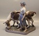 Beskrivelse: Dahl Jensen 1262 Pige med ko (Lauritz Jensen) 29 cm. Mærket med kongelig krone og DJ Copenhagen i hel og fin stand.