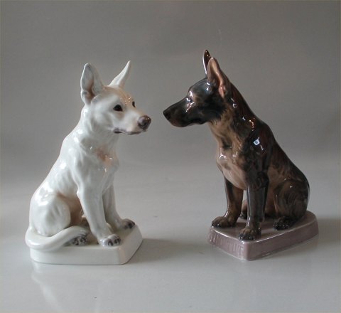 Beskrivelse: Dahl Jensen 1100 "King Tut" Schæferhund på fod 15 cm. Mærket med kongelig krone og DJ Copenhagen i hel og fin stand.