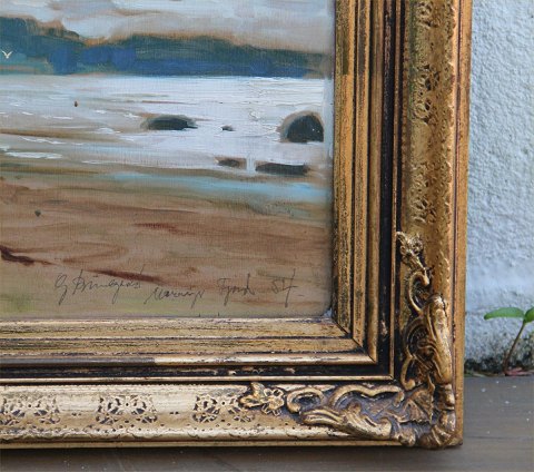 Maleri Gunnar Bundgaard Mariagerfjord 42 x 52 cm inklusiv flot guldramme