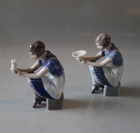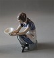 Description: Dahl Jensen 1119 Girl Ceramicist (DJ) 11 cm with bowl - Variation with vase. Marked with the Royal Crown and DJ Copenhagen. In nice and mint condition Dahl Jensen Worked first for Bing & Groendahl B&G from 1897