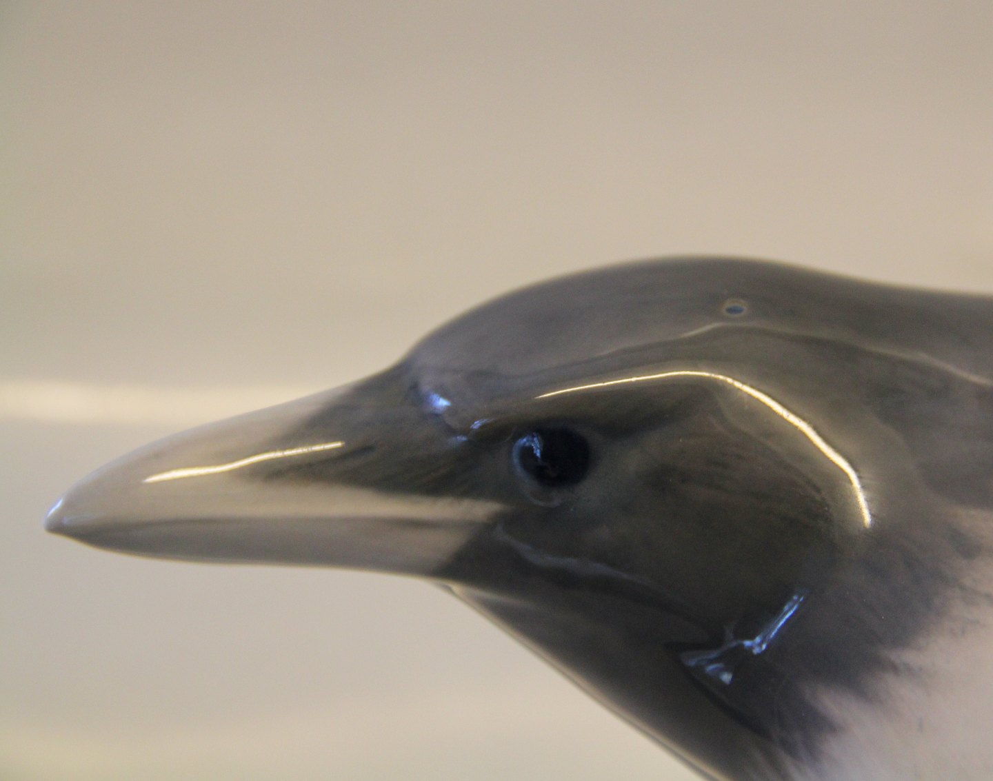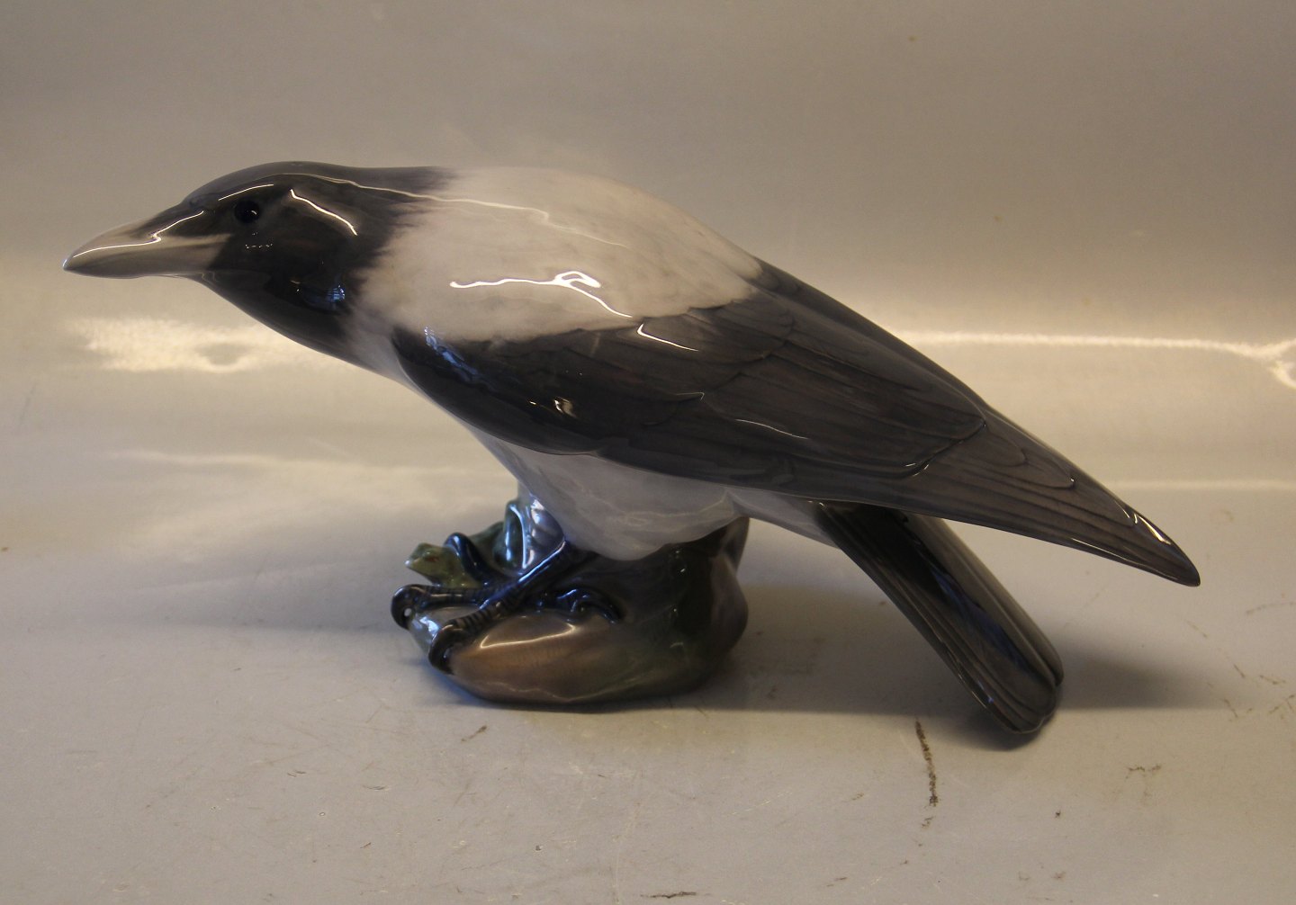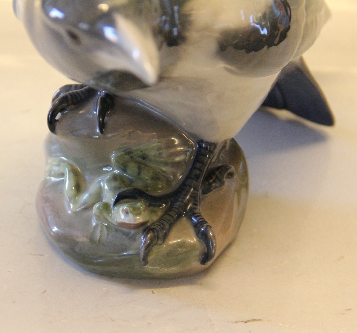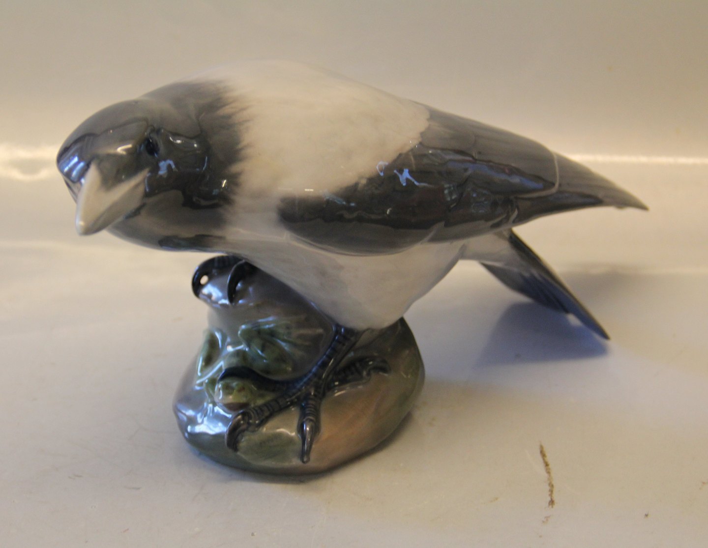 Beskrivelse: Kgl. fuglefigur fra Royal Copenhagen 0365 Kgl. Krage med frø Chr. Thomsen 1901 16 x 35 cm 2. I hel og fin stand