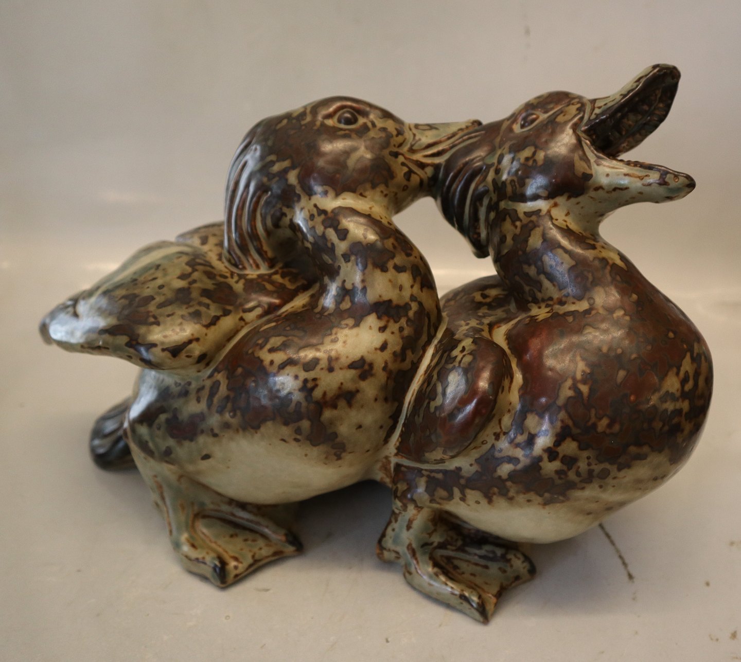 20281 Kgl. 2 kæmpende ænder, Knudn Kyhn, januar 1932 Kongelig Dansk Stentøj