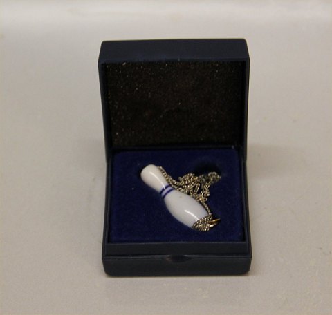 Beskrivelse: Bing & Grøndahl Miniature Bowlingkegle 3,8 med kæde i Original box Kæden skal lige limes fast I fin og hel stand.