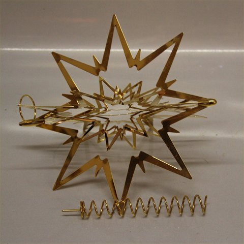 Beskrivelse: Georg Jensen Stor Topstjerne til juletræ, 29 cm med spiral Forgyldt Messing Design Flemming Eskildsen Julepynt