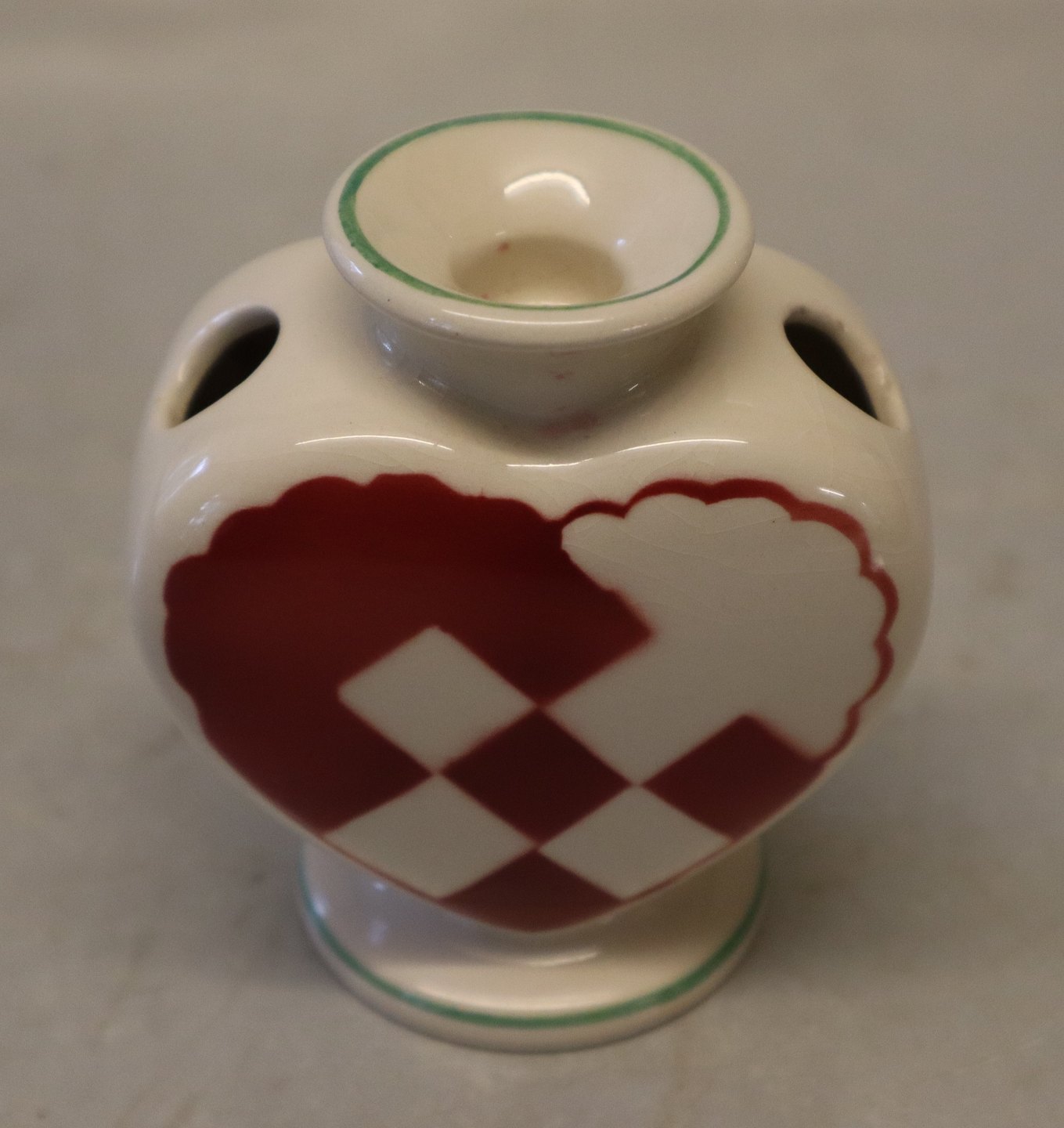 Rød Hjertevase 7,5 cm Design HHH Hans Henrik Hansen i 1944 i fin stand med aldersvarende krakelering stemplet Royal Copenhagen Faience Julehjerte Hjertestager