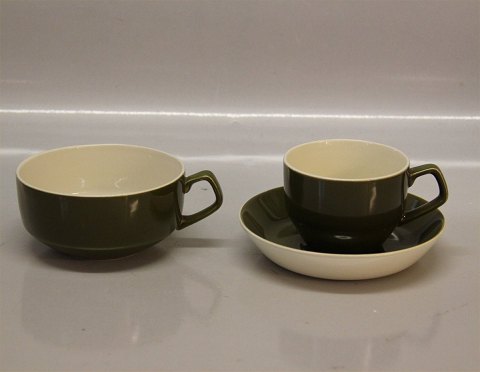 Beskrivelse: Royal Copenhagen Aluminia fajance Timiana (Grøn) 1960-1969 på spisestelstelform Prunella designet af arkitekt Magnus Stephensen 1958