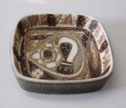 Aluminia Fajance 719-2883 Firkantet brun skål, medium 17 x 17 cm Baca Nils Thorsson