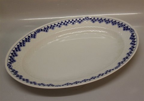 Beskrivelse: Bing & Grøndahl Kronberg 314 Fad 22,5 cm Hvidt porcelæn, blå halvblonde med gennembrudt bort, form 356 I fin og hel stand Bing & Groendahl