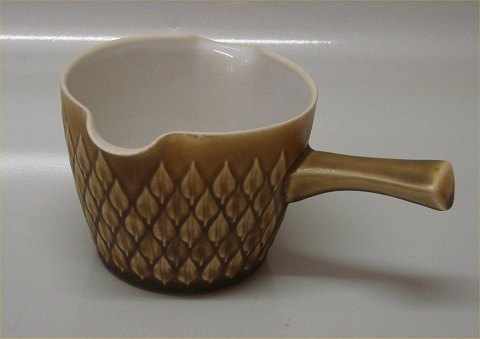 Bing & Grøndahl B&G Relief 311 Sauceskål med håndtag 9 x 19 cm (1961) Quistgaard Nissen Kronjyden stentøjsstel. I fin og hel stand. Bing & Groendahl. Stemplet Kronjyden eller Bing & Grondahl Copenhagen Stoneware: Bladformet mønster i releif på gult stentøj af Quistgaard for Kronjyden, Nissen.