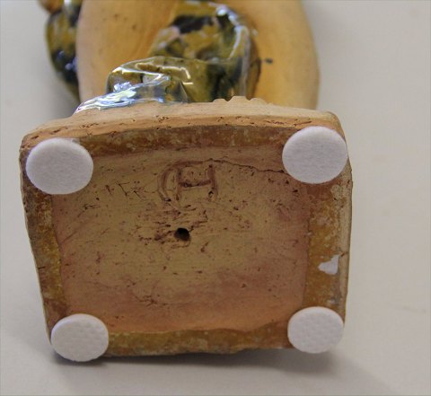 Beskrivelse: Helge Christoffersen Nøgen kvinde 52 cm Chamotte og grøn glasur stentøj I fin og hel stand