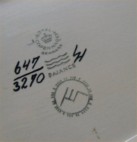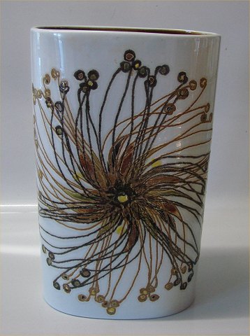 Beskrivelse: 647-3770 Stor oval vase 31 cm Ellen Malmer Baca Aluminia Royal Copenhagen Aluminia fajance Baca