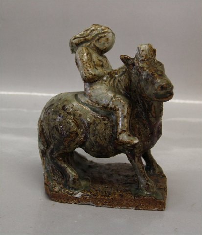 B&G Stoneware Pige rider på hest K. Otto ca 12 x 11 cm