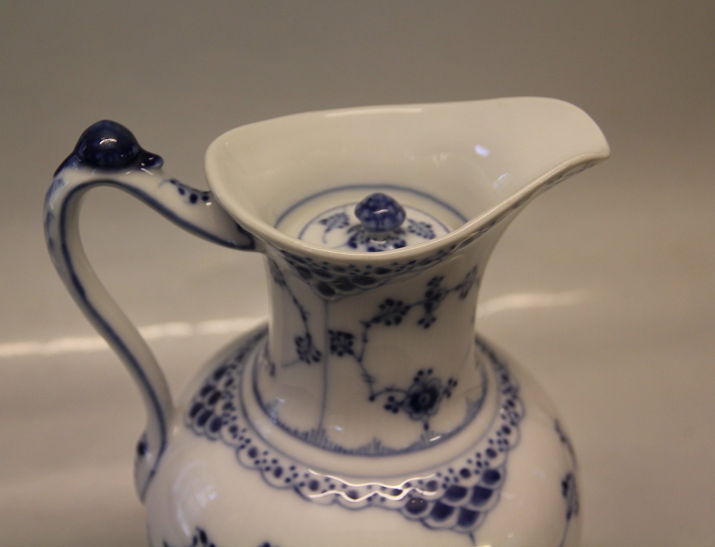 Beskrivelse: Kongelig Dansk Porcelæn Musselmalet Halv blonde 722-1 Chokoladekande med/låg 23,5 cm. I fin og hel stand Blue Fluted half lace