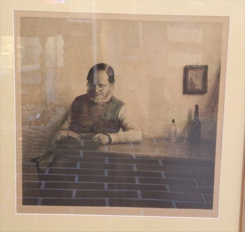 Opus 43."Hendrik" Læsende mand ved bord. Lysmål 48.8 x 48.4 cm. Mezzotint. Sort 1924 #43 ad 200 Signeret Peter Ilsted Flot sølvramme 72 x 68 cm