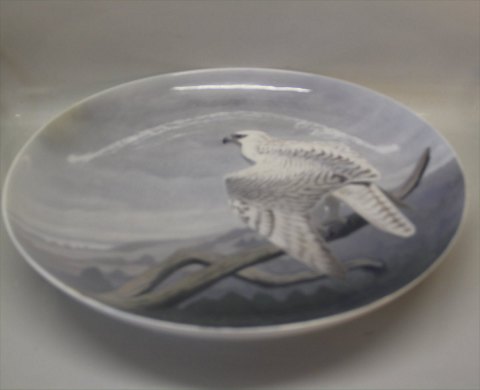 : Stor Kgl. Vægfad med Islandsk falk fra Royal Copenhagen Signeret Th Fischer