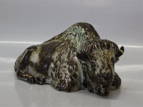 Beskrivelse: Royal Copenhagen stentøj 22604 Kgl. Bison Karl Larsen (Lille udgave) febr. 1976 11 x 22 cm