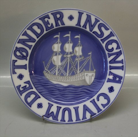 Beskrivelse: Bing & Grøndahl Tønder Insignia 24 cm By platte med byvåben en serie skabt af Effie Hergermann-Lindencrone. I fin og hel stand. Byvåbenplatte