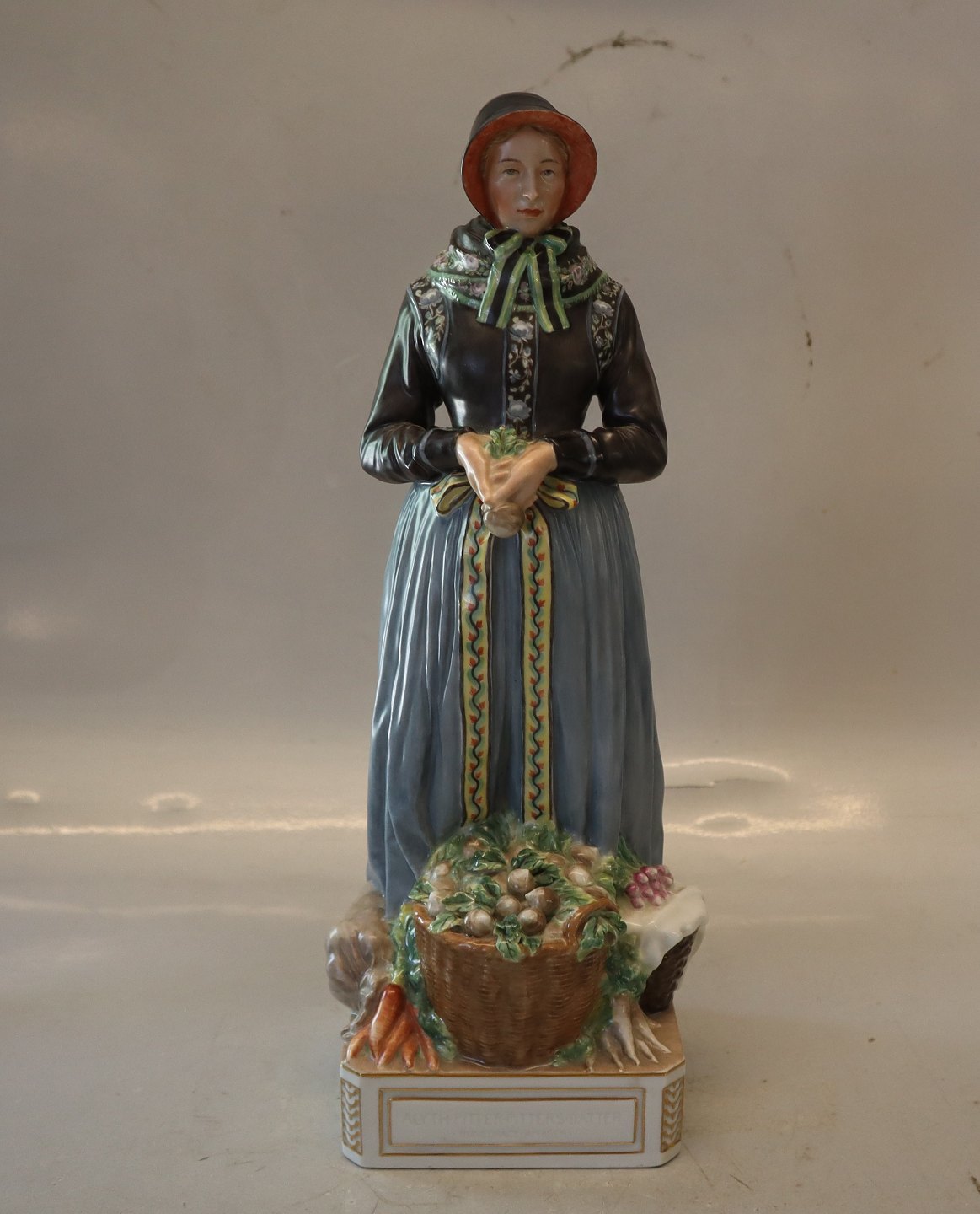 Beskrivelse: Kgl. figur fra Royal Copenhagen Overglasur 12102 Kgl. Alyth Pitter Pitters Datter Torvedragt, Amager 31 cm Egnsfigur I hel og fin stand