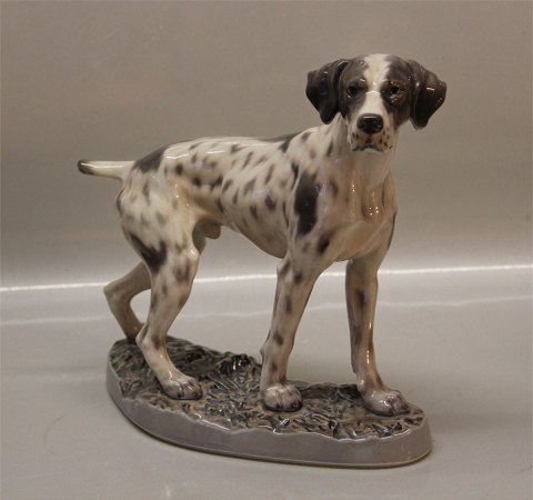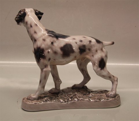 Beskrivelse: Dahl Jensen hund 1283 Tysk korthåret Pointer 24,7 x28 cm (Lauritz Jensen) 1. Mærket med kongelig krone og DJ Copenhagen i hel og fin stand.