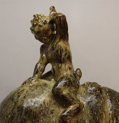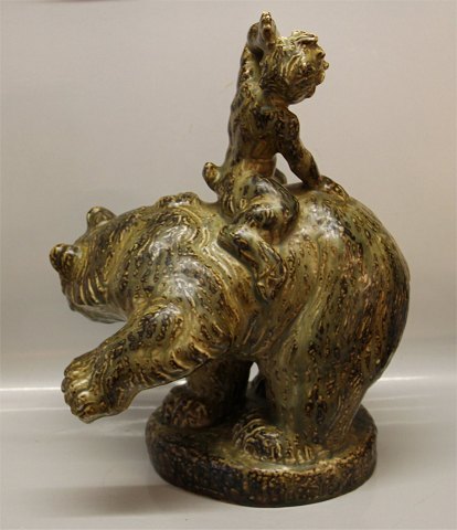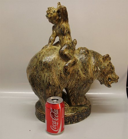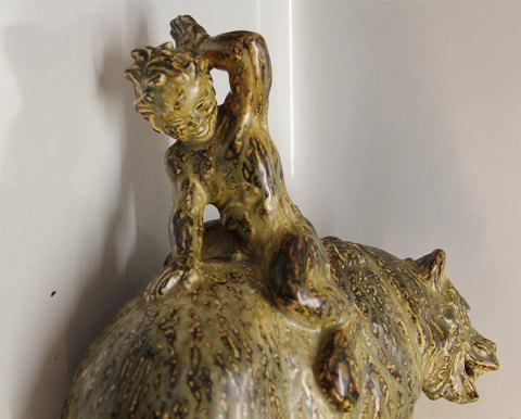 Beskrivelse: Royal Copenhagen stentøj 21233 Kgl. Bjørn med Faun april 1954 Knud Kyhn 42 x 39 cm I fin og hel stand